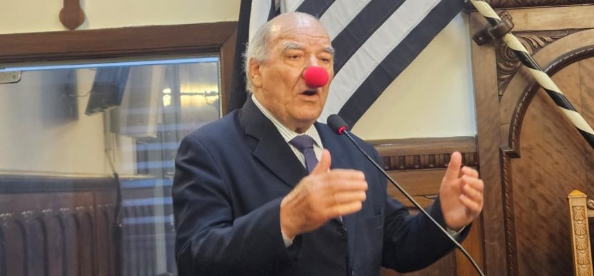 Usando um nariz de palhaço, o vereador José Roberto Segalla disse que essa era é a sensação de sentimento da Câmara Municipal.
