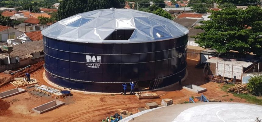 A construção será em aço vitrificado, com revestimento interno em aço inoxidável, nas proximidades do poço 1 a ser perfurado na região, este sob responsabilidade do Departamento de Água e Esgoto.